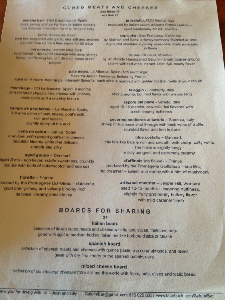 Salumi Tapas & Wine Bar in Massapequa, NY offers a cozy atmosphere with impeccable charcuterie and a diverse menu. The menu features gourmet sandwiches like the unique Madrid Sandwich and delicious Paninis such as the Lyon Panini with fig jam. The salads, like the Burrata & Prosciutto Salad, are fresh and flavorful. Customers rave about the fantastic wine selection and friendly staff. The ambiance is described as high-end, with wood tones and dim lighting setting the mood for a perfect dining experience. Whether you're looking for a small bite or a full meal, Salumi is the place to be for a memorable dining experience.